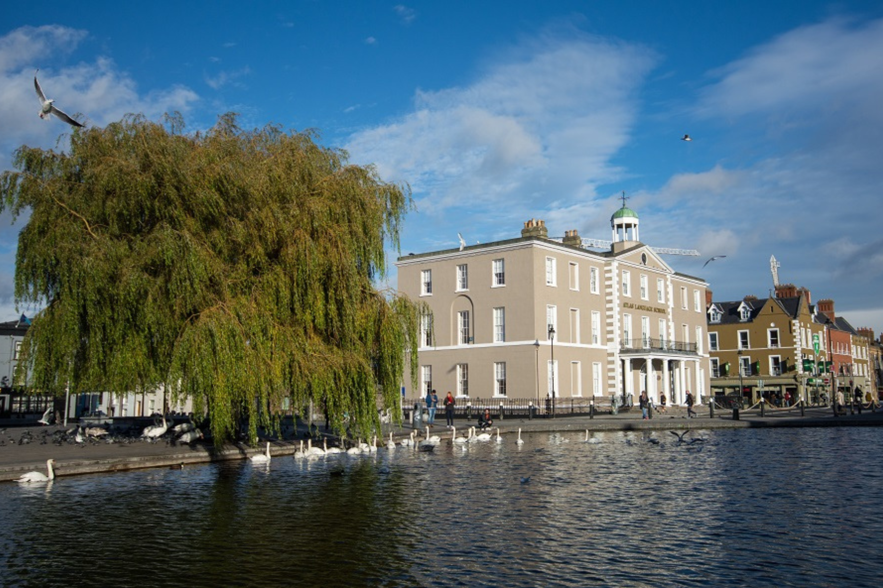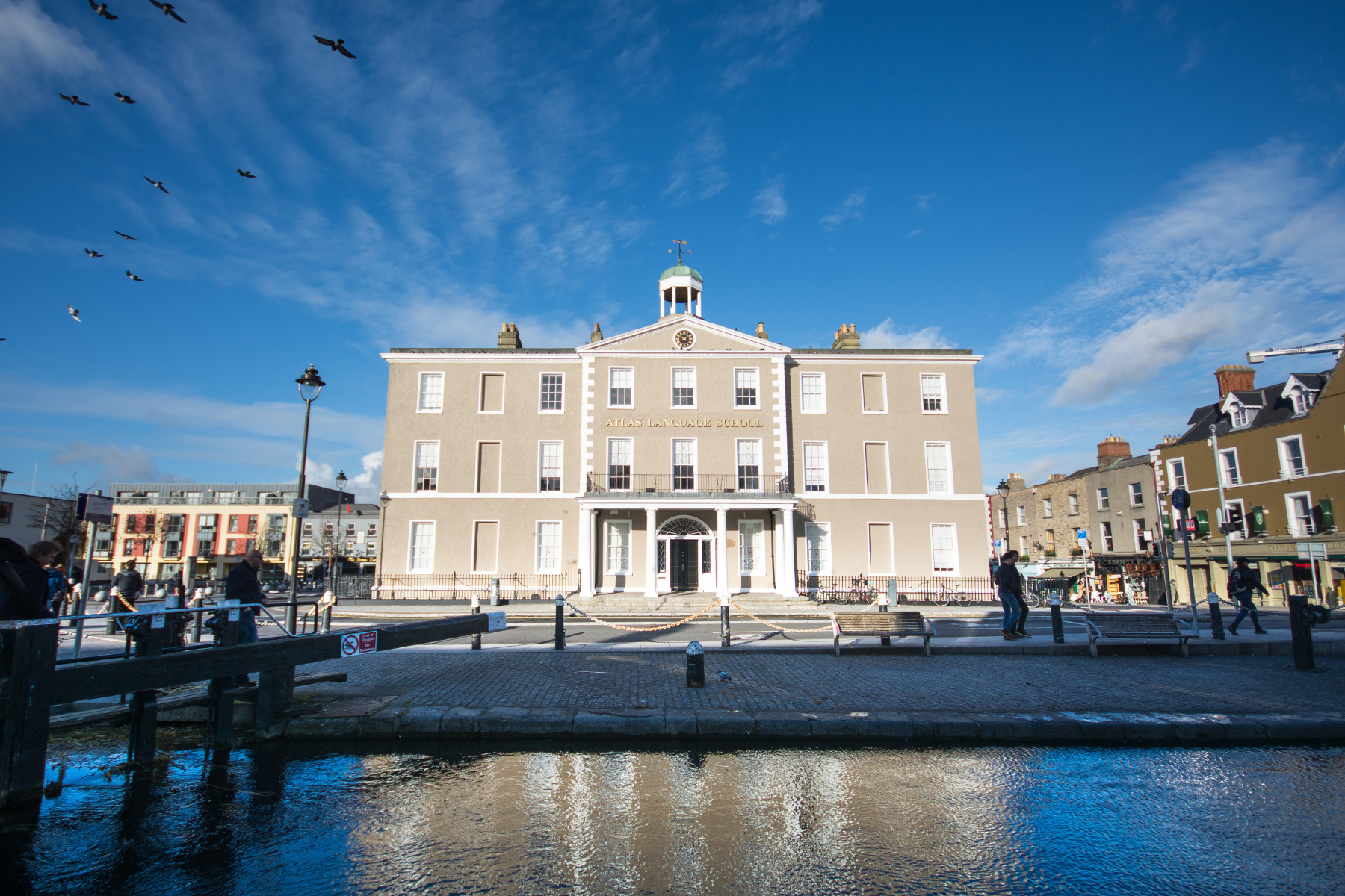 アイルランド最大級の語学学校Atlas Language School。校舎はダブリン中心部のグランドキャナル沿いに建つ歴史的建造物「ポートベロハウス」にあり、市中心部まで徒歩約10分と通学・生活・観光すべてに便利な立地です。